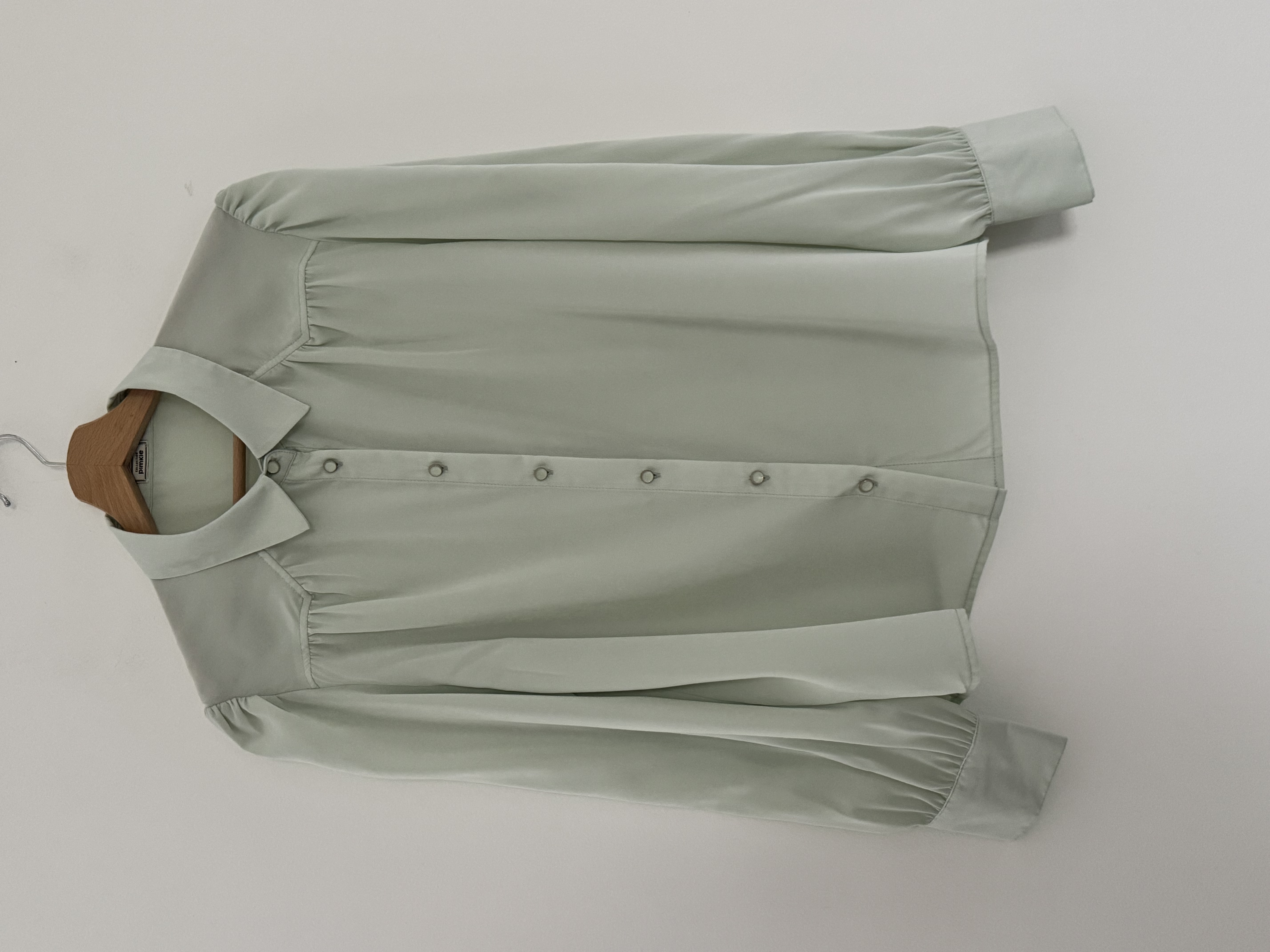 Une personne en Chemise manche longue Taille L debout, face à la caméra, dans une chambre à la lumière douce, avec une lumière naturelle filtrant par la fenêtre.