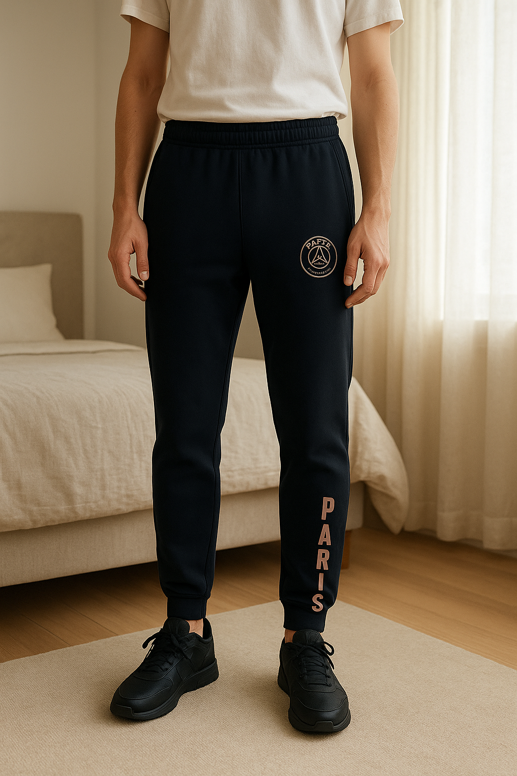 Bas psgxjordan debout, face à la caméra, dans une chambre à la lumière douce, avec une lumière naturelle filtrant par la fenêtre.