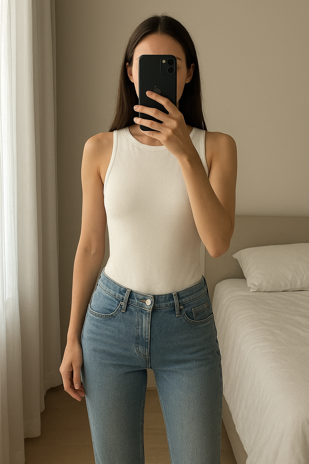 Mit einem Klick verwandelt unser KI-Mannequin dein Produktbild in ein realistisches Model-Foto mit einem virtuellen Mannequin.