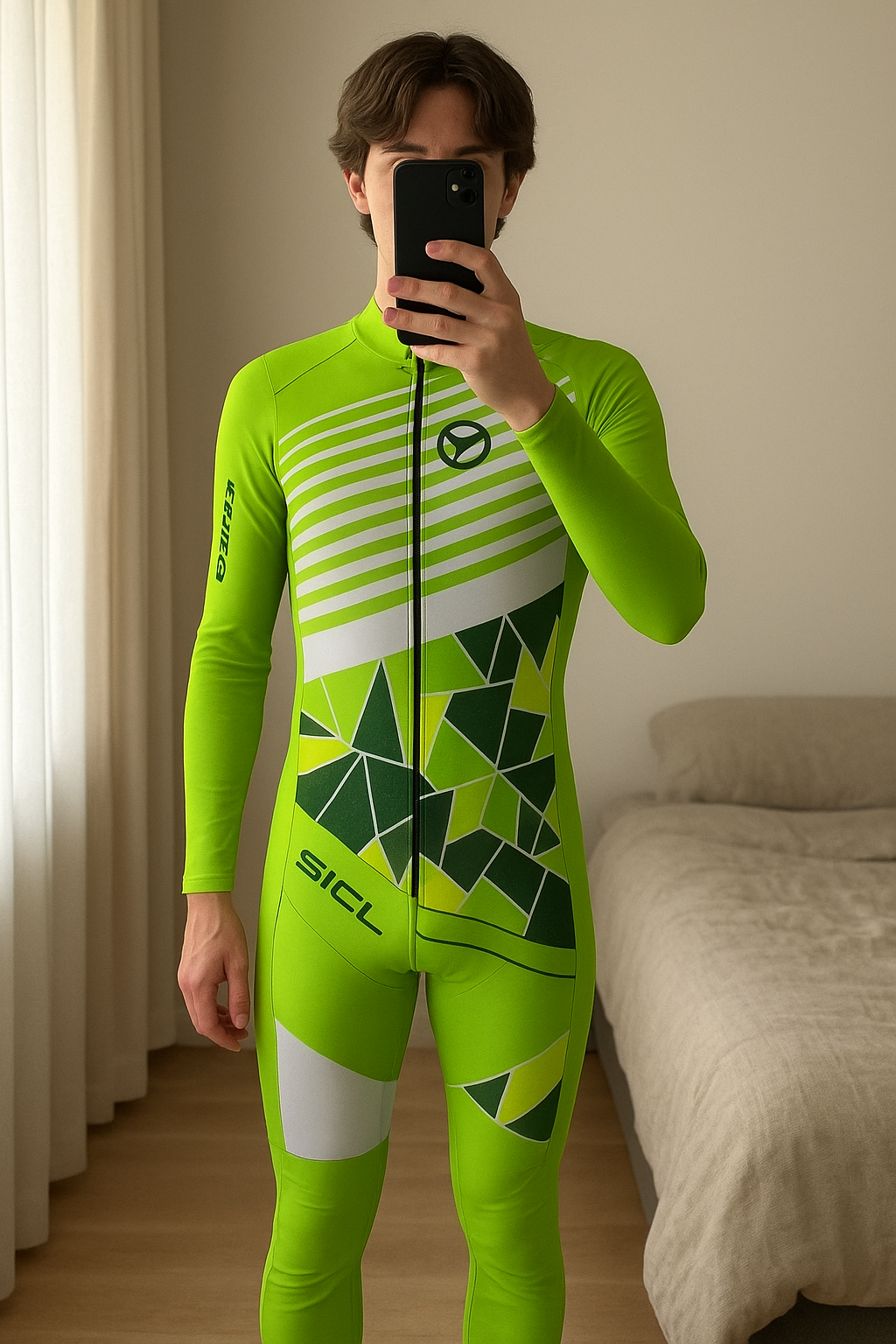 Combinaison de plongée junior campionari zip sicleri 002831803 debout, face à la caméra, dans une chambre à la lumière douce, avec une lumière naturelle filtrant par la fenêtre.