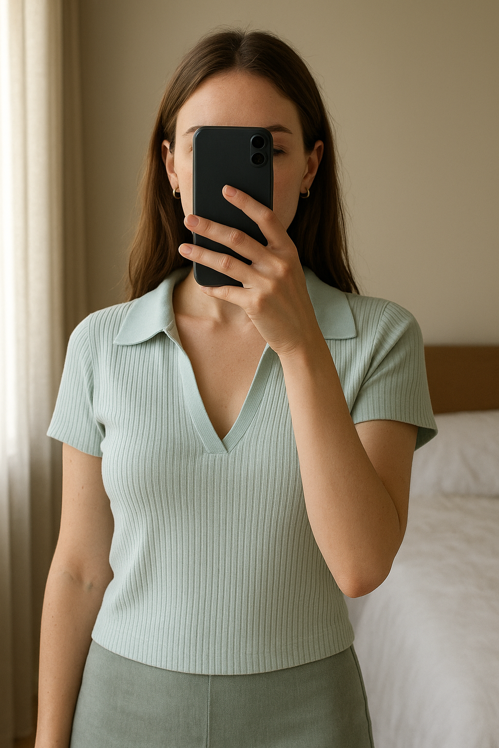 Mit einem Klick verwandelt unsere KI dein Produktbild in ein realistisches Model-Foto.