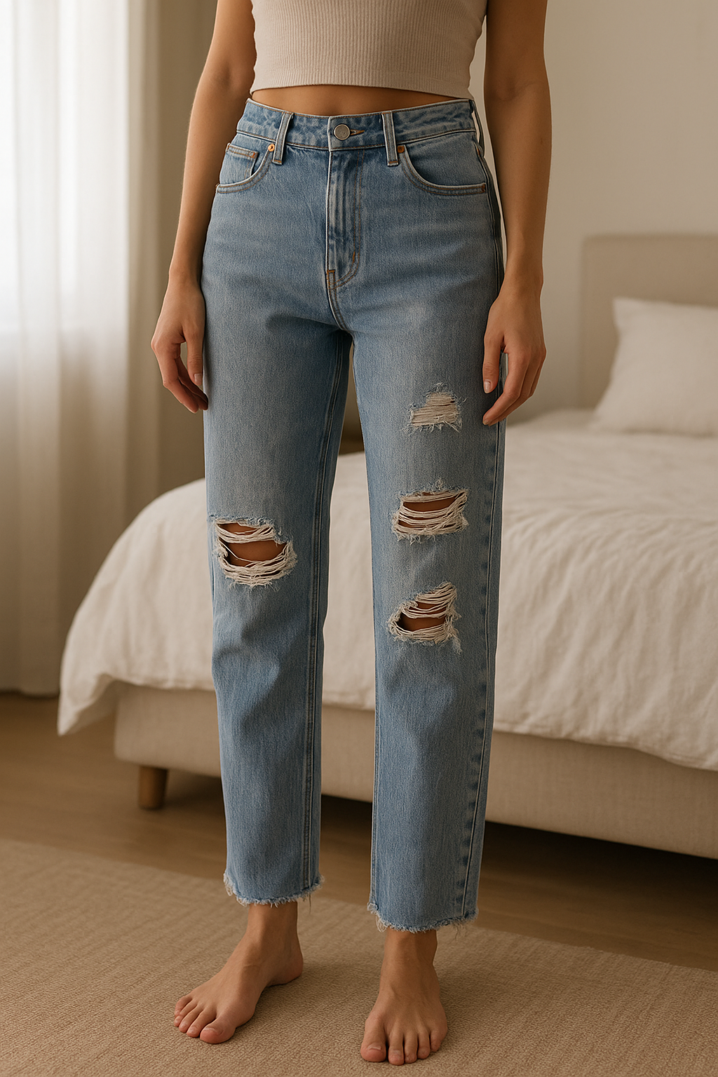 Mit einem Klick verwandelt unser KI-Mannequin dein Produktbild in ein realistisches Model-Foto mit einem virtuellen Mannequin.