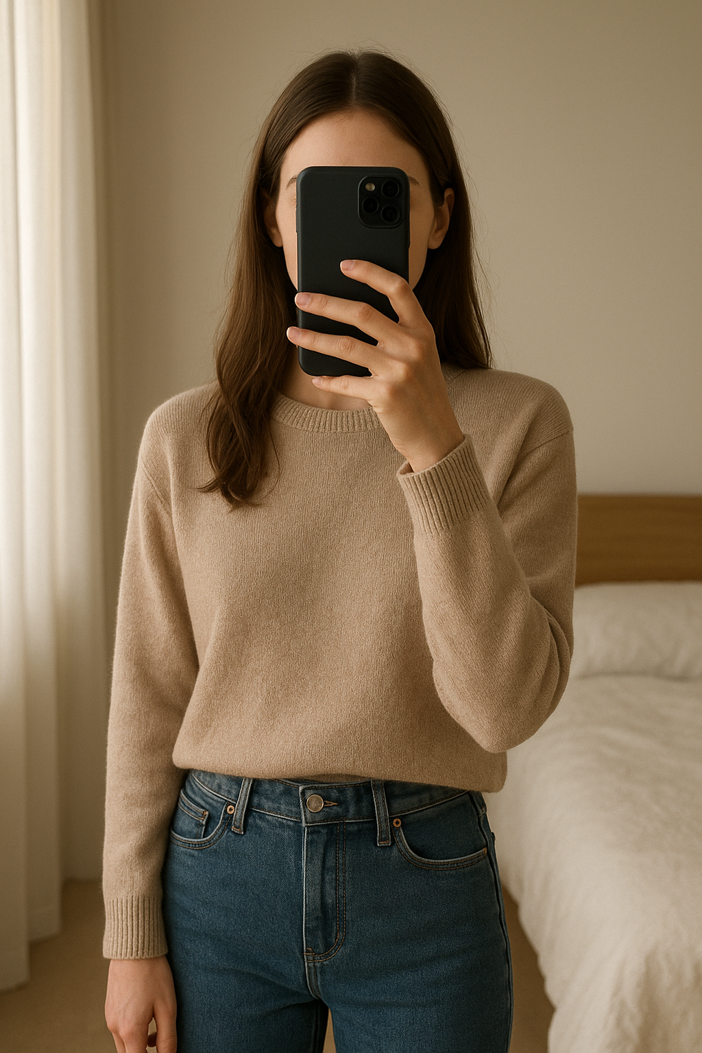Mit einem Klick verwandelt unser KI-Mannequin dein Produktbild in ein realistisches Model-Foto mit einem virtuellen Mannequin.