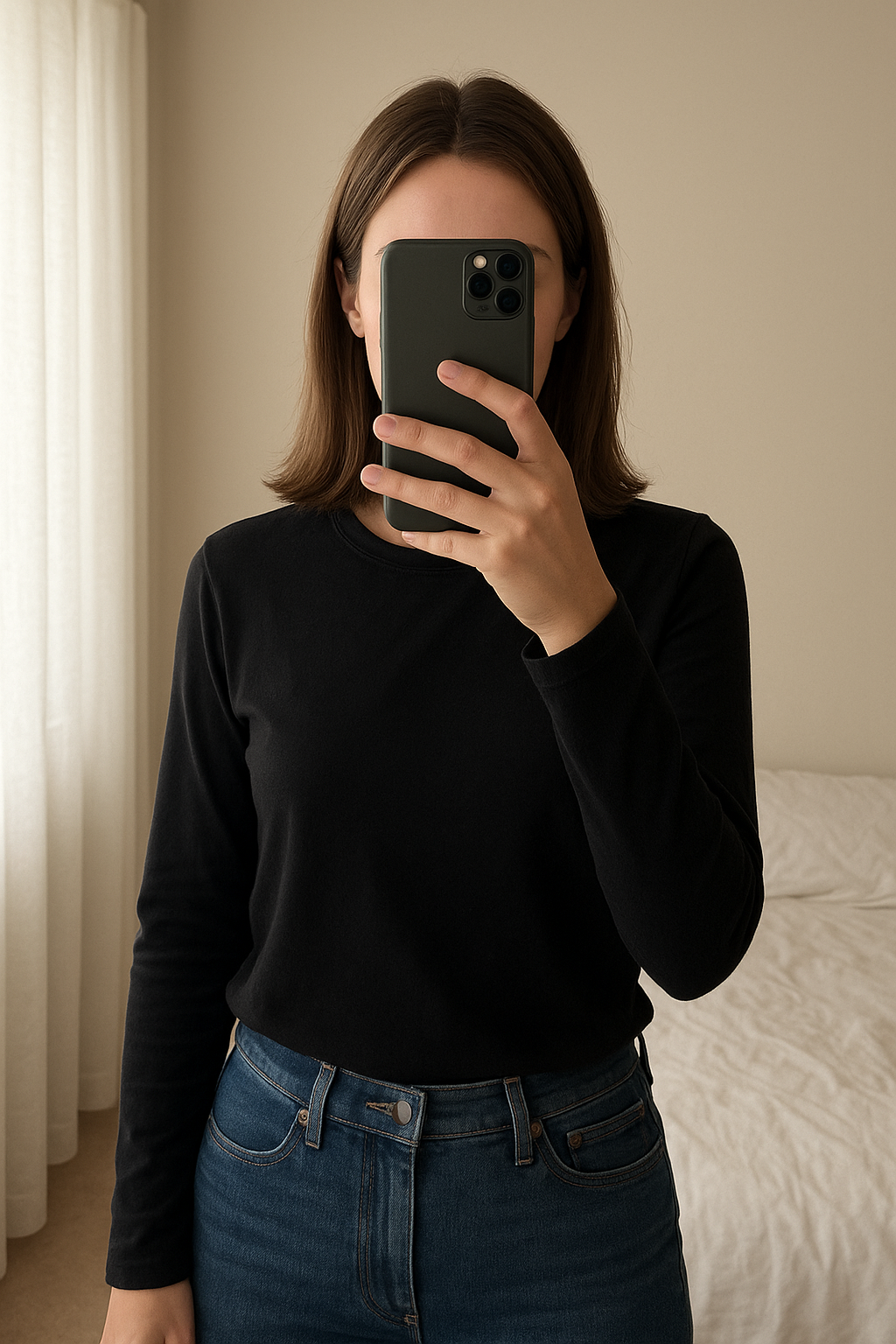 Mit einem Klick verwandelt unser KI-Mannequin dein Produktbild in ein realistisches Model-Foto mit einem virtuellen Mannequin.