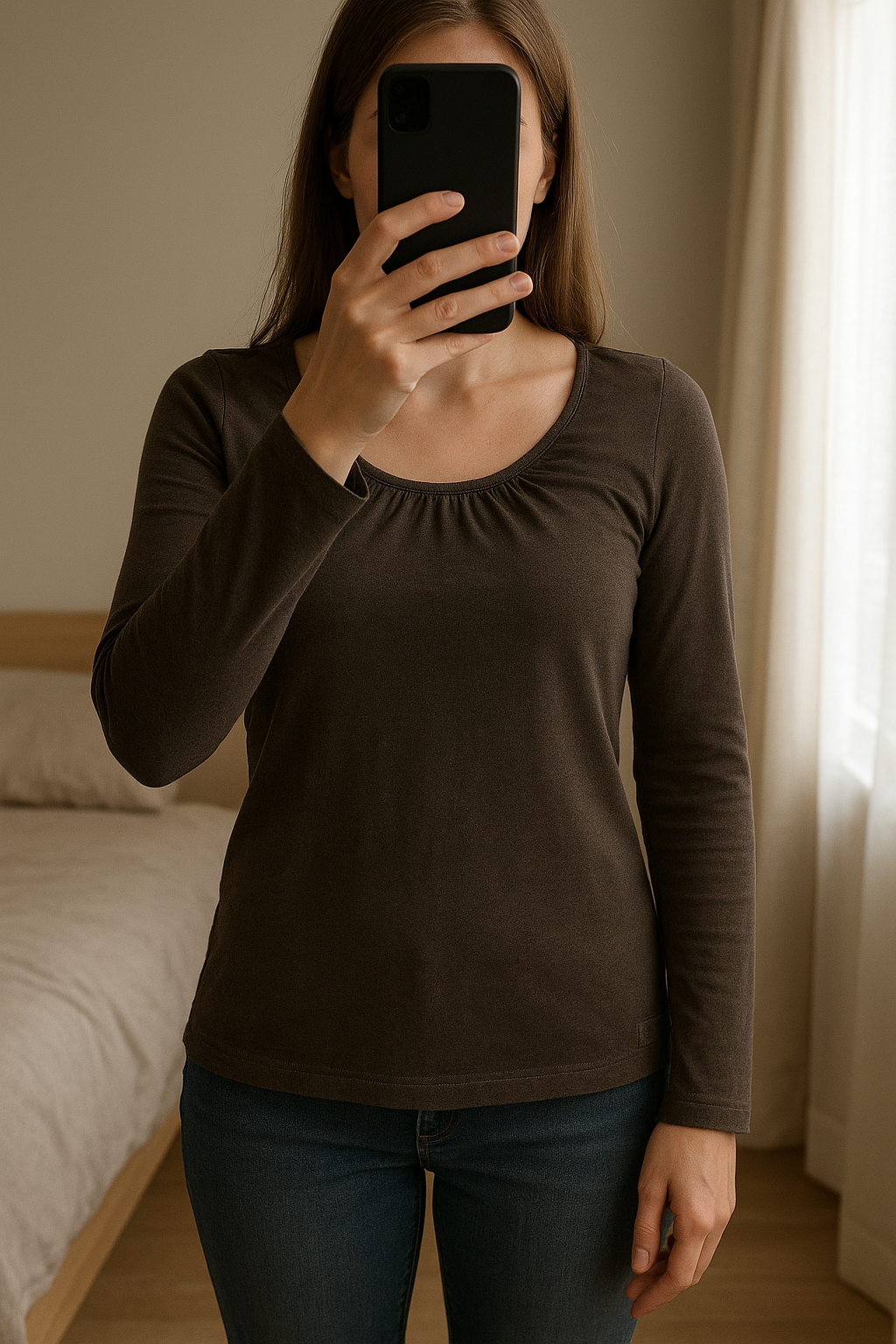 Mit einem Klick verwandelt unsere KI dein Produktbild in ein realistisches Model-Foto.
