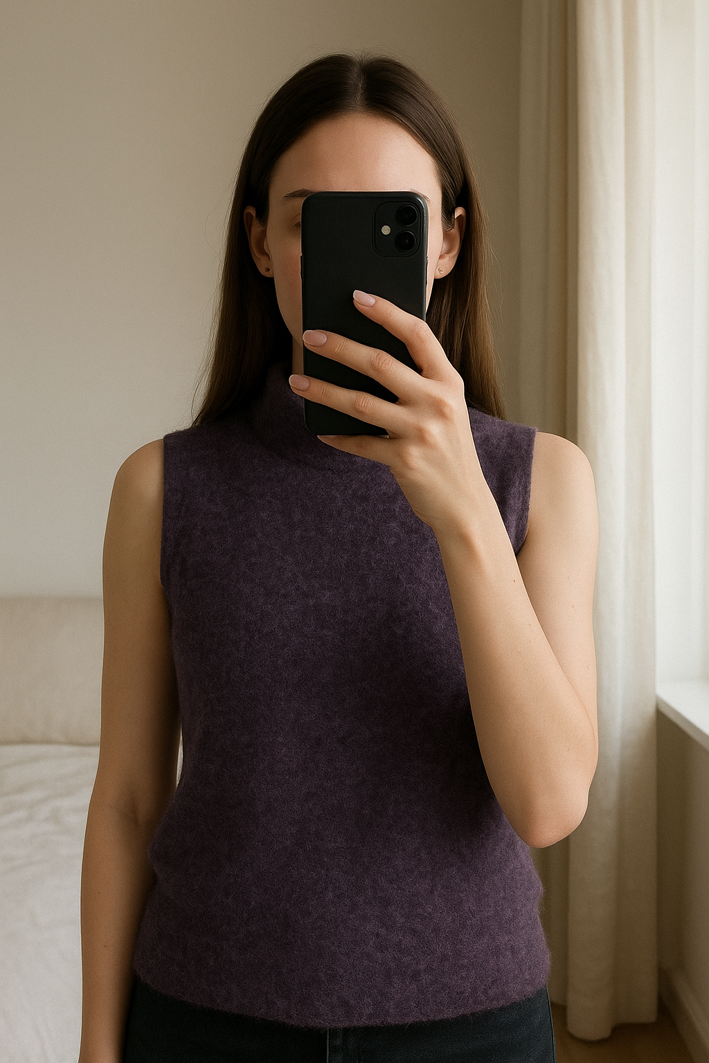 Füge deinen Vinted-Link ein und sieh das getragene Ergebnis mit unserem KI-Mannequin!