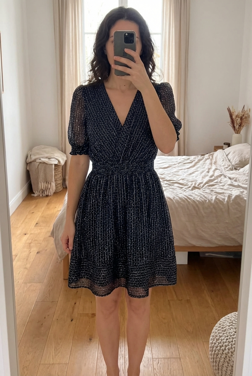 Füge deinen Vinted-Link ein und sieh das getragene Ergebnis mit unserem KI-Mannequin!