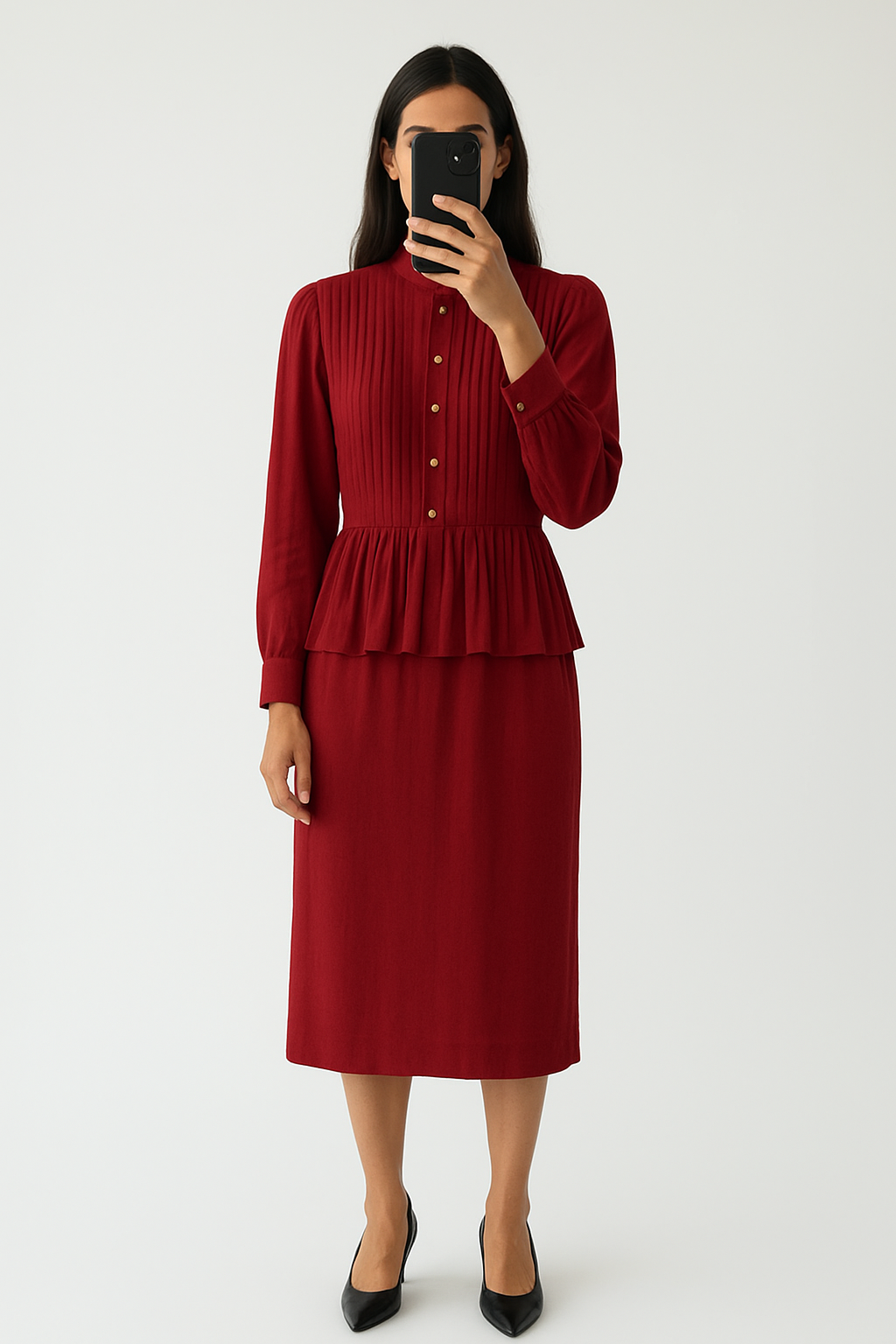 Une personne en Robe Gérard pasquier debout, face à la caméra, avec une silhouette fine, dans un studio photo épuré avec fond blanc et éclairage doux.