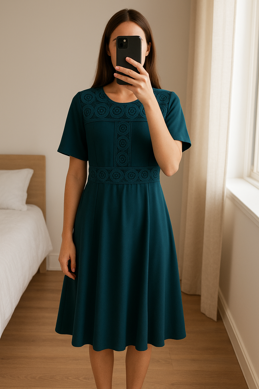Füge deinen Vinted-Link ein und sieh das getragene Ergebnis mit unserem KI-Mannequin!