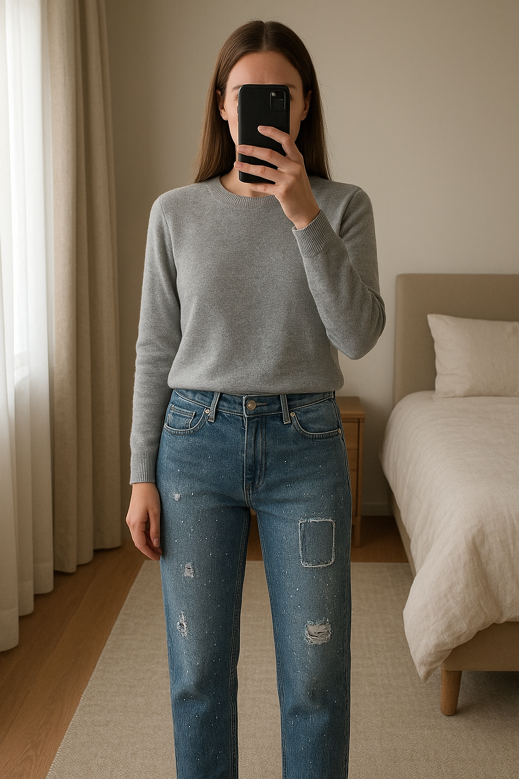 Füge deinen Vinted-Link ein und sieh das getragene Ergebnis mit unserem KI-Mannequin!