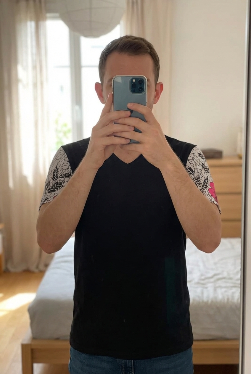 Mit einem Klick verwandelt unser KI-Mannequin dein Produktbild in ein realistisches Model-Foto mit einem virtuellen Mannequin.