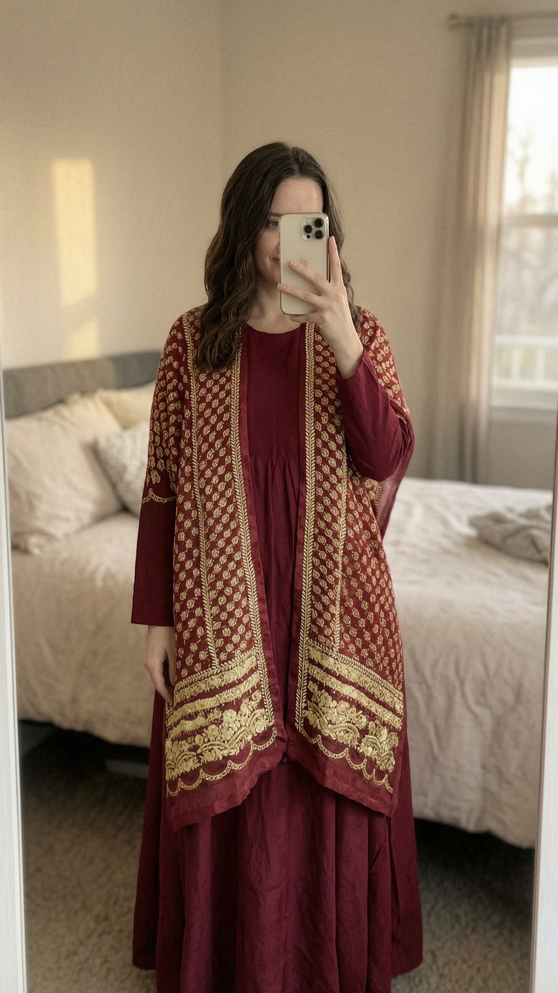 📦 Cheap Postage 📦 Plus Size 24 Asian Party Dress standing straight facing the camera, in a softly lit bedroom setting, with gentle natural light filtering through a window.