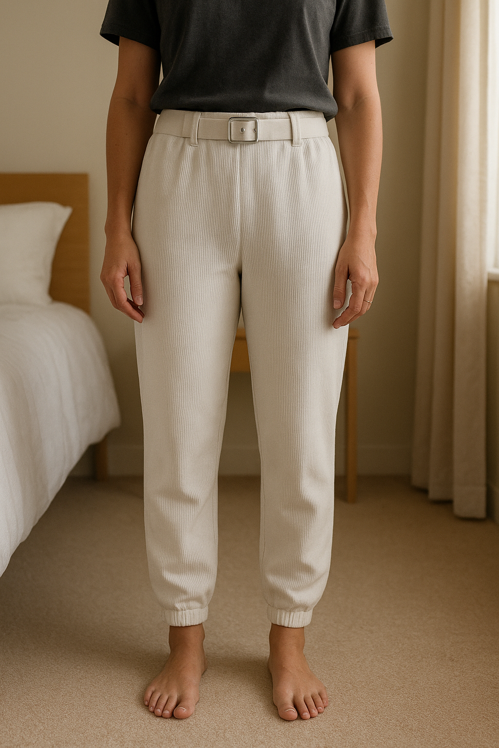 JRB Silicone Style Golf Belt standing straight facing the camera, in a softly lit bedroom setting, with gentle natural light filtering through a window.