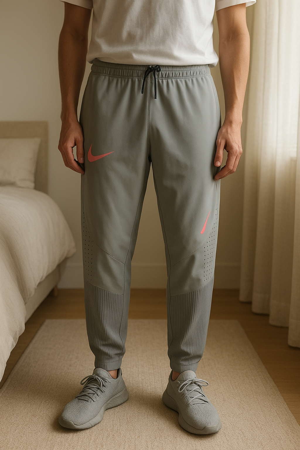 nike aeroswift debout, face à la caméra, dans une chambre à la lumière douce, avec une lumière naturelle filtrant par la fenêtre.