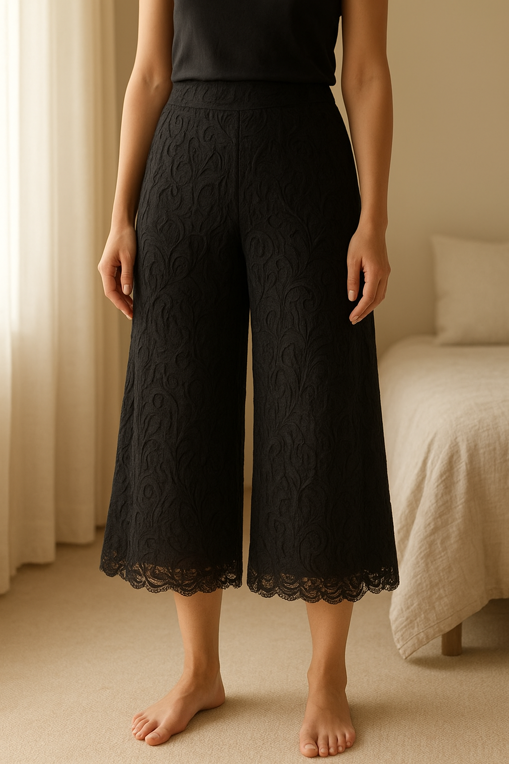 Phase Eight fab beautiful party skirt, Black, tape work/ribbon applique unworn Size 16 standing straight facing the camera, in a softly lit bedroom setting, with gentle natural light filtering through a window.