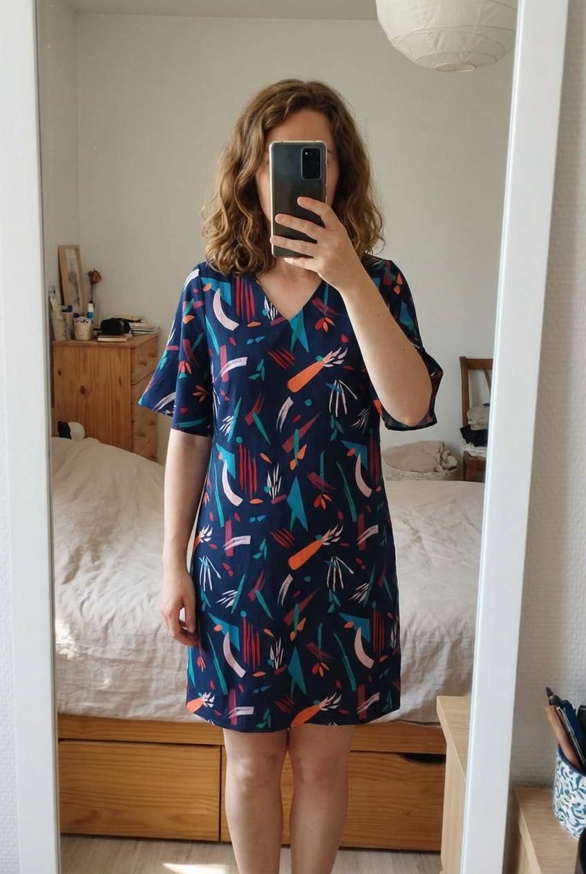 Robe Yumi debout, face à la caméra, dans une chambre à la lumière douce, avec une lumière naturelle filtrant par la fenêtre.