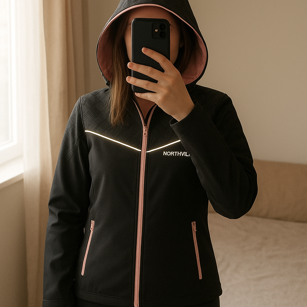 Veste Northville debout, face à la caméra, dans une chambre à la lumière douce, avec une lumière naturelle filtrant par la fenêtre.