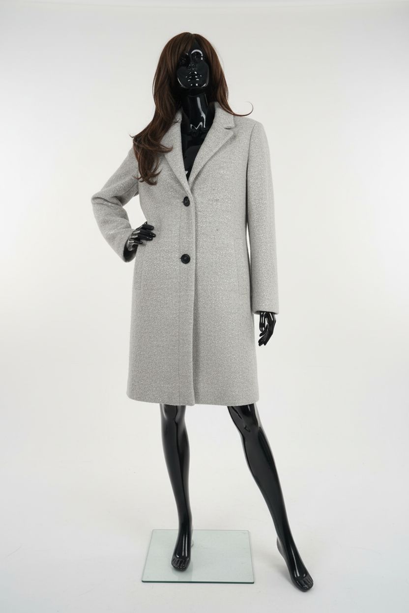 a glossy black plastic mannequin with no facial features in Women’s mint velvet coat arching their back slightly for a dynamic pose, in a clean photo studio with seamless white backdrop and softbox lighting.