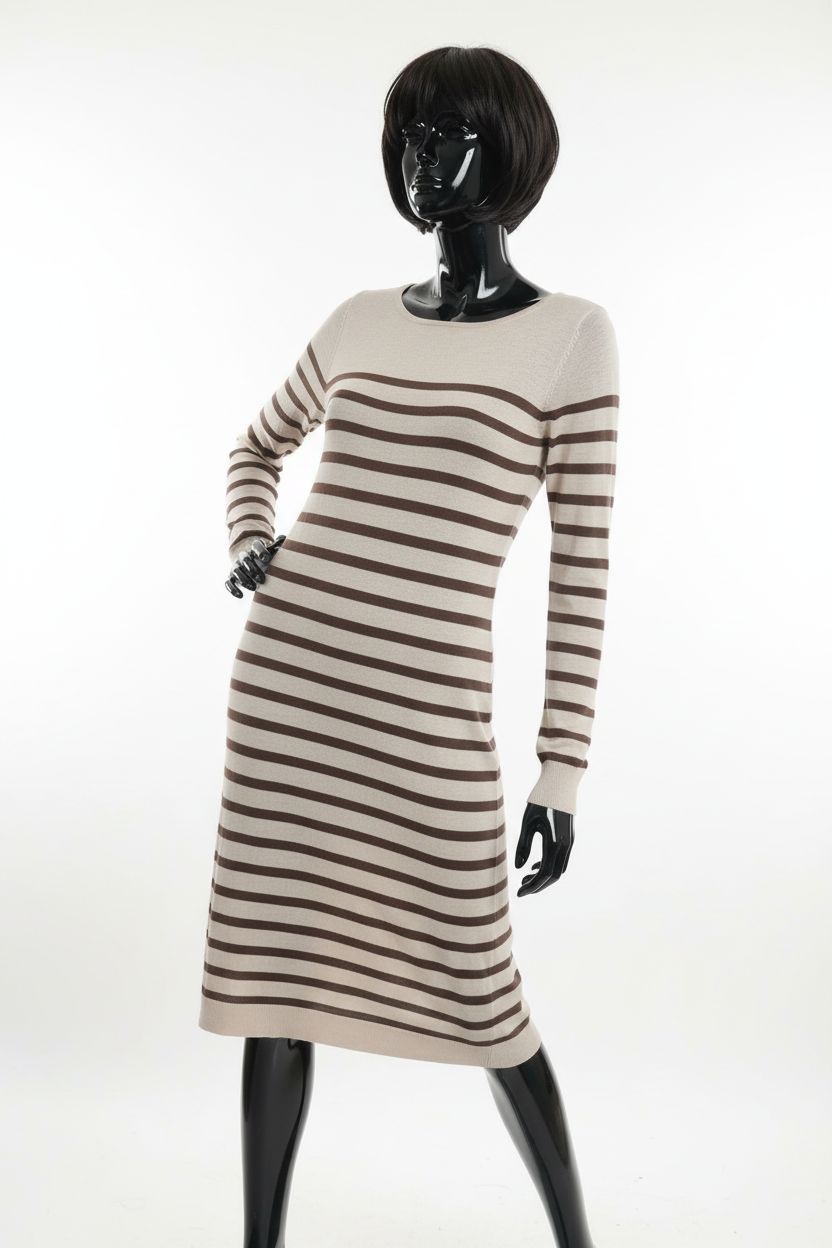 a glossy black plastic mannequin with no facial features in Women’s Phase Eight Size 16 Long Jumper arching their back slightly for a dynamic pose, in a clean photo studio with seamless white backdrop and softbox lighting.