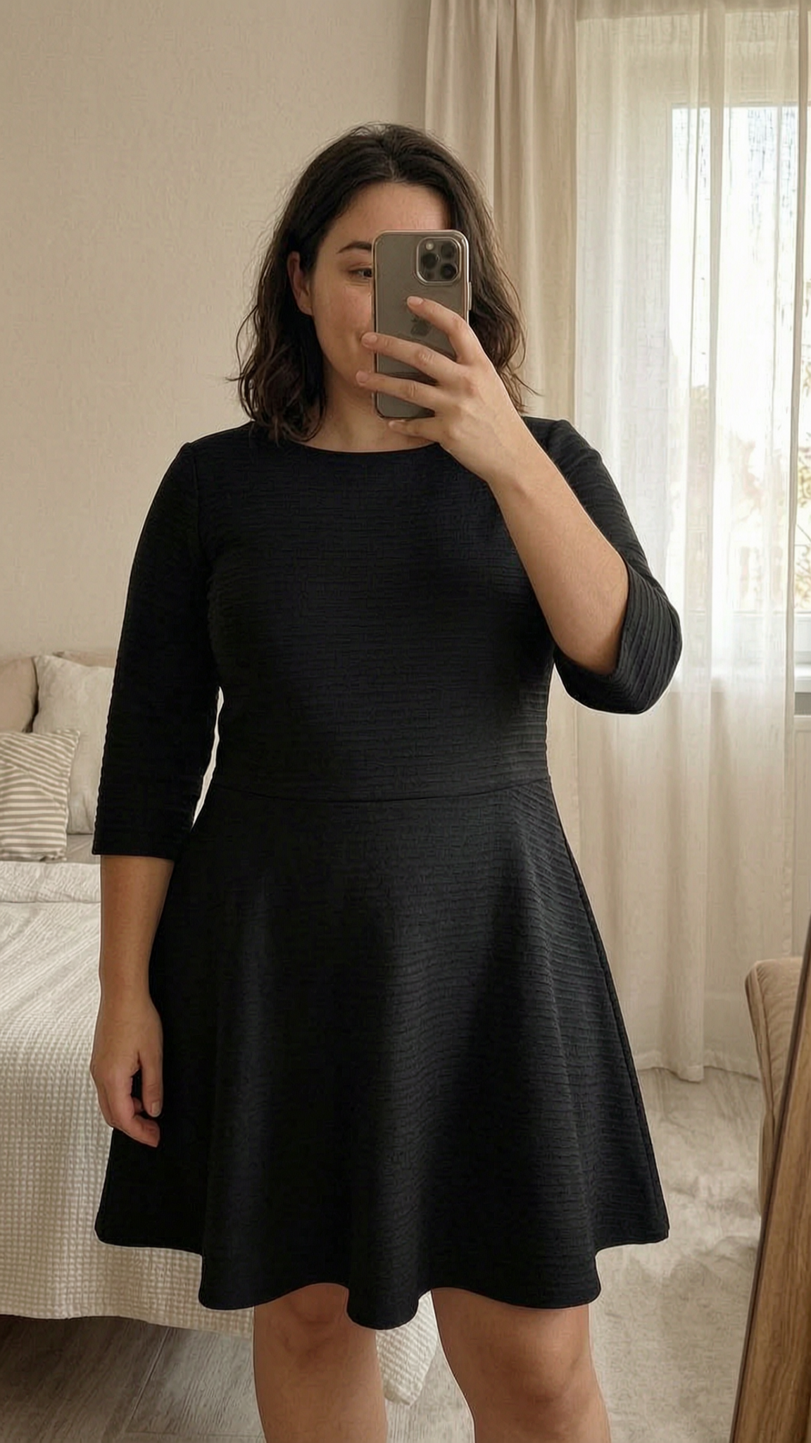 Review by Andra - Black fit-and-flare dress with 3/4 sleeves