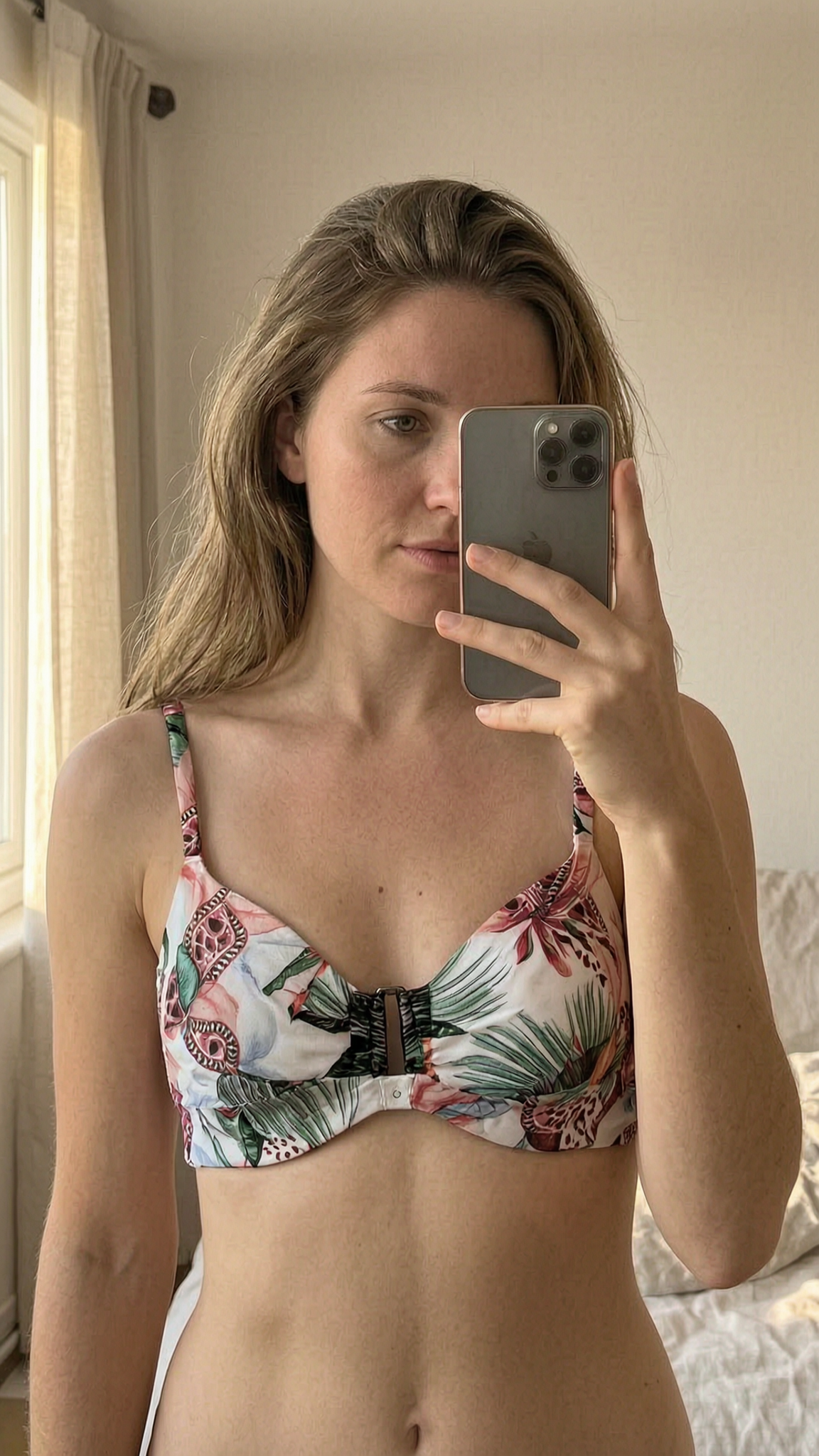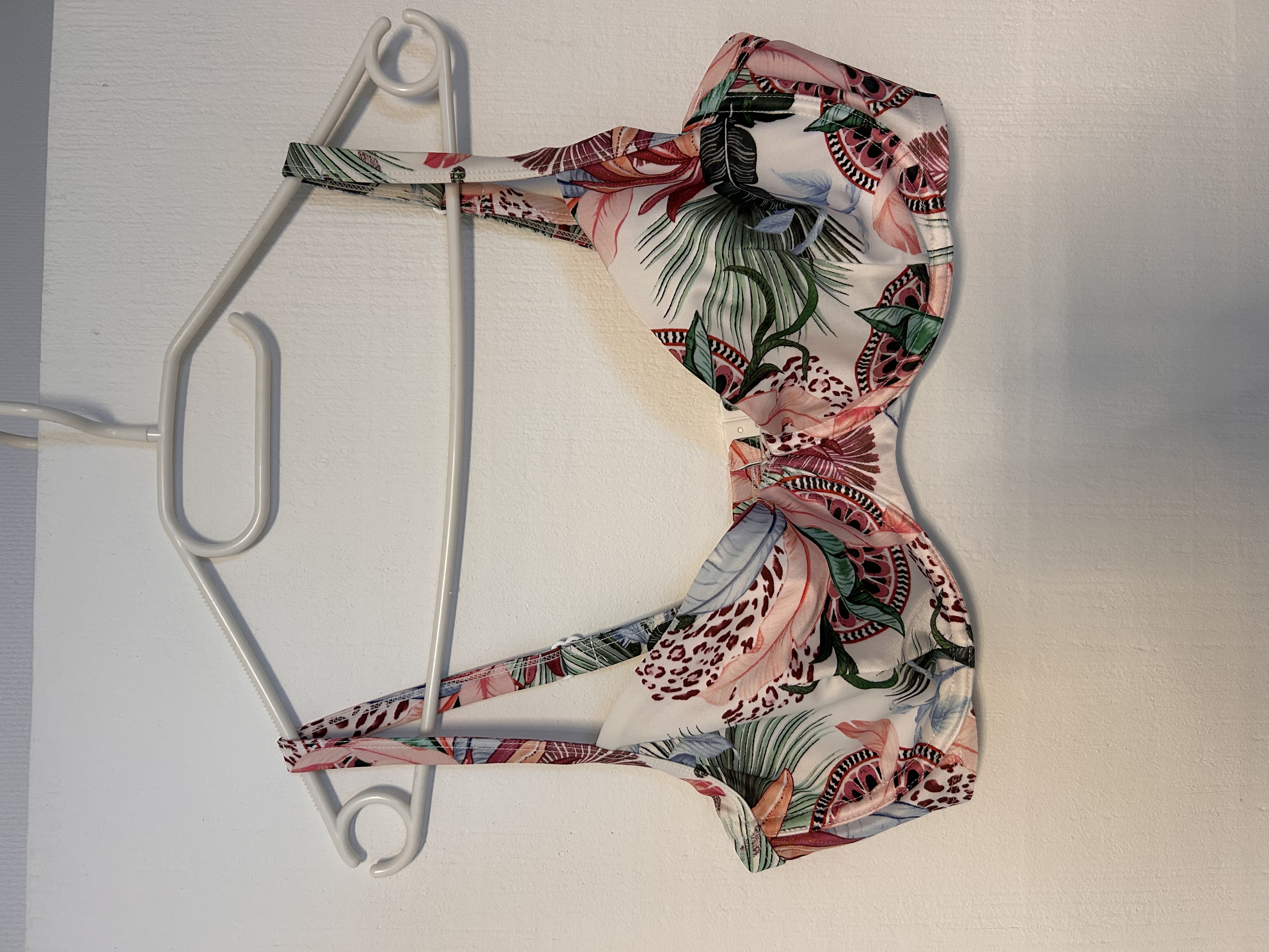 Review by Gabriela - Tropical print balconette top, white base