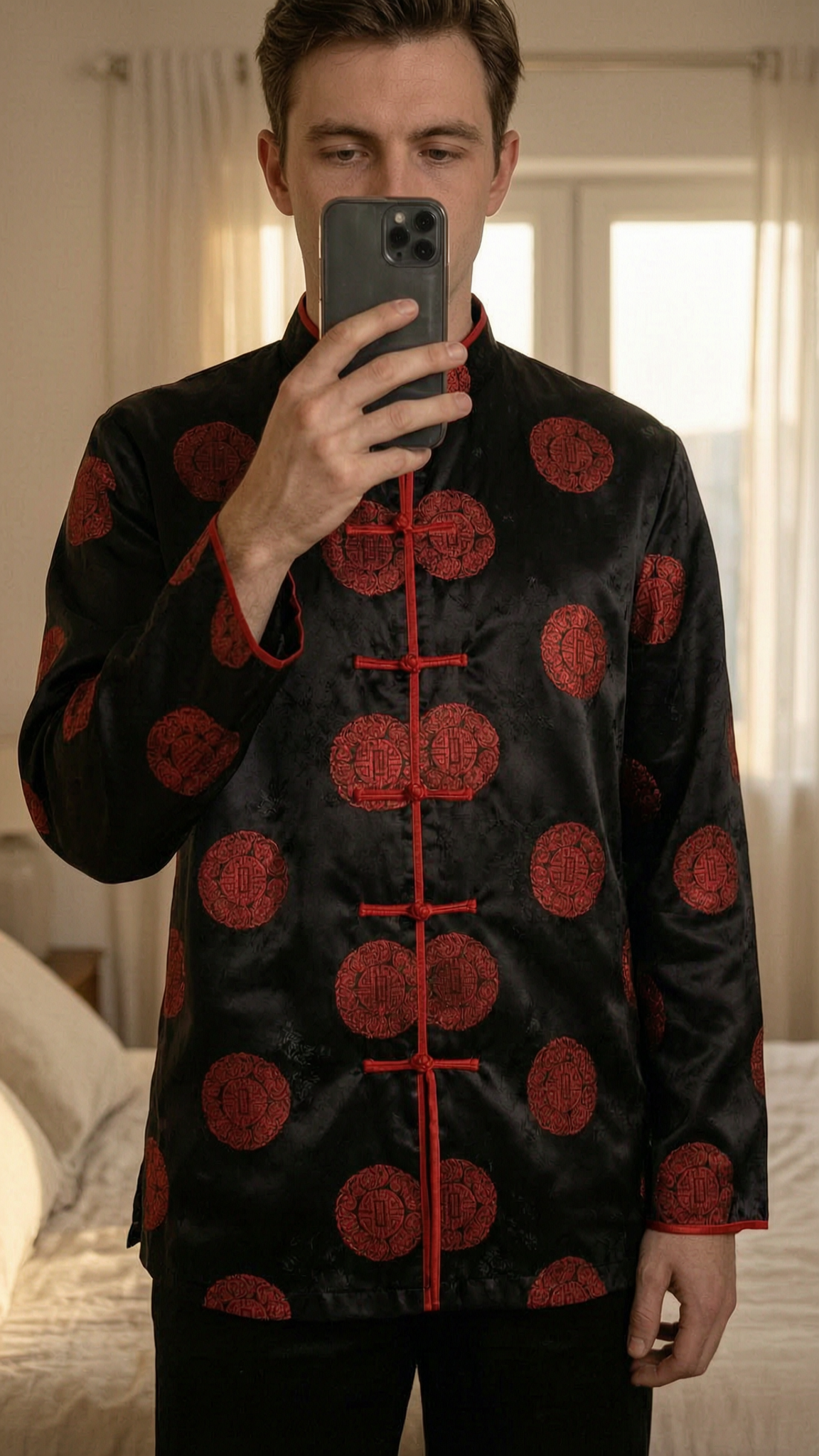 Review by Anonymous - Men's black satin Chinese-style jacket M