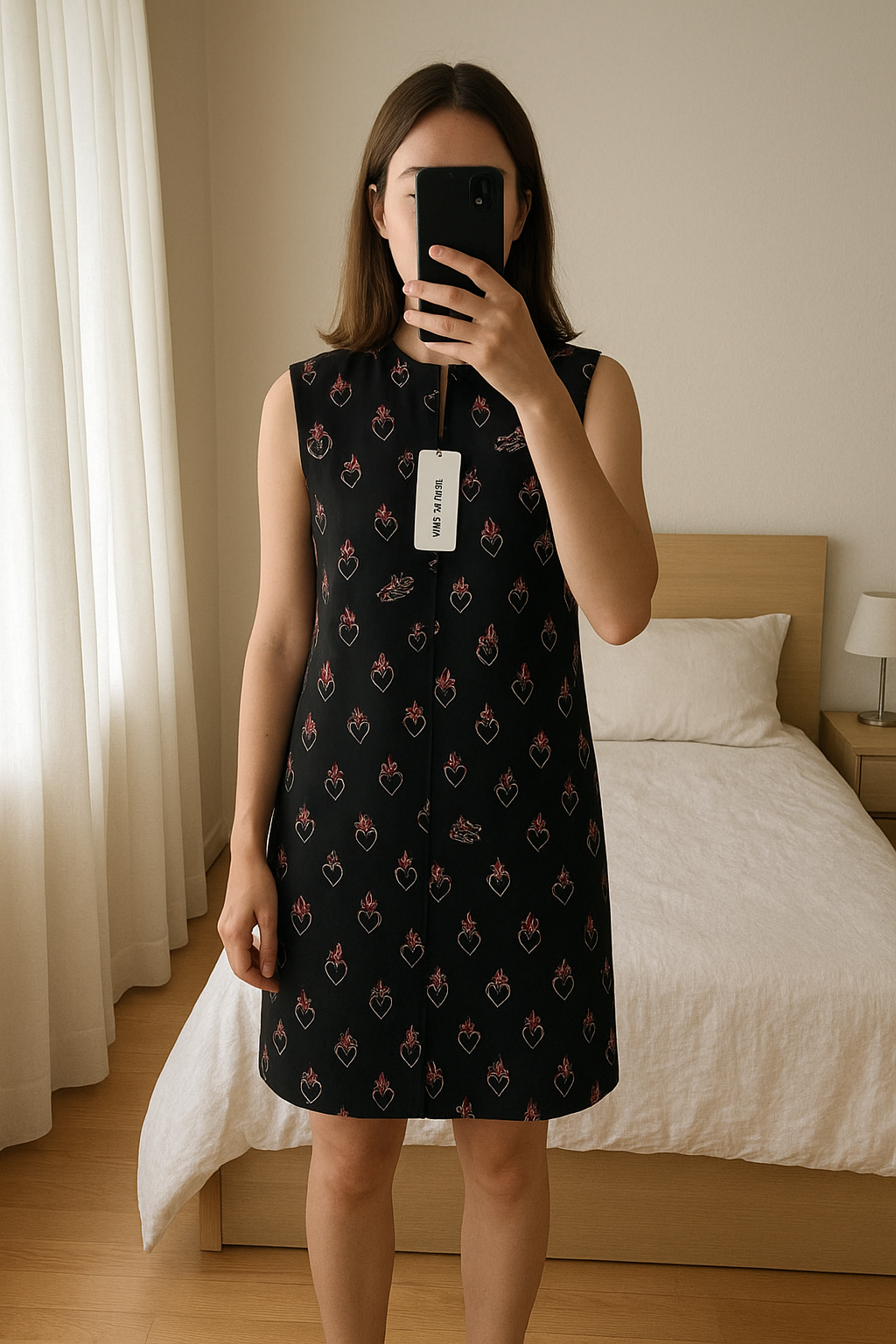 Bimba y Lola dress de pie, mirando a la cámara, en un dormitorio con luz suave y natural filtrándose por la ventana.