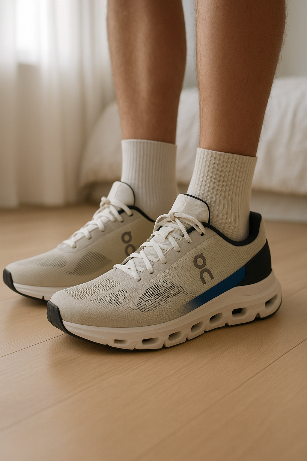 On Cloudrift debout, face à la caméra, dans une chambre à la lumière douce, avec une lumière naturelle filtrant par la fenêtre.