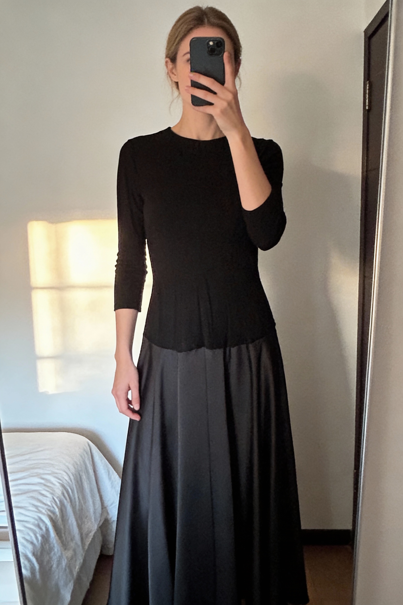 Robe Imperial debout, face à la caméra, dans une chambre à la lumière douce, avec une lumière naturelle filtrant par la fenêtre.