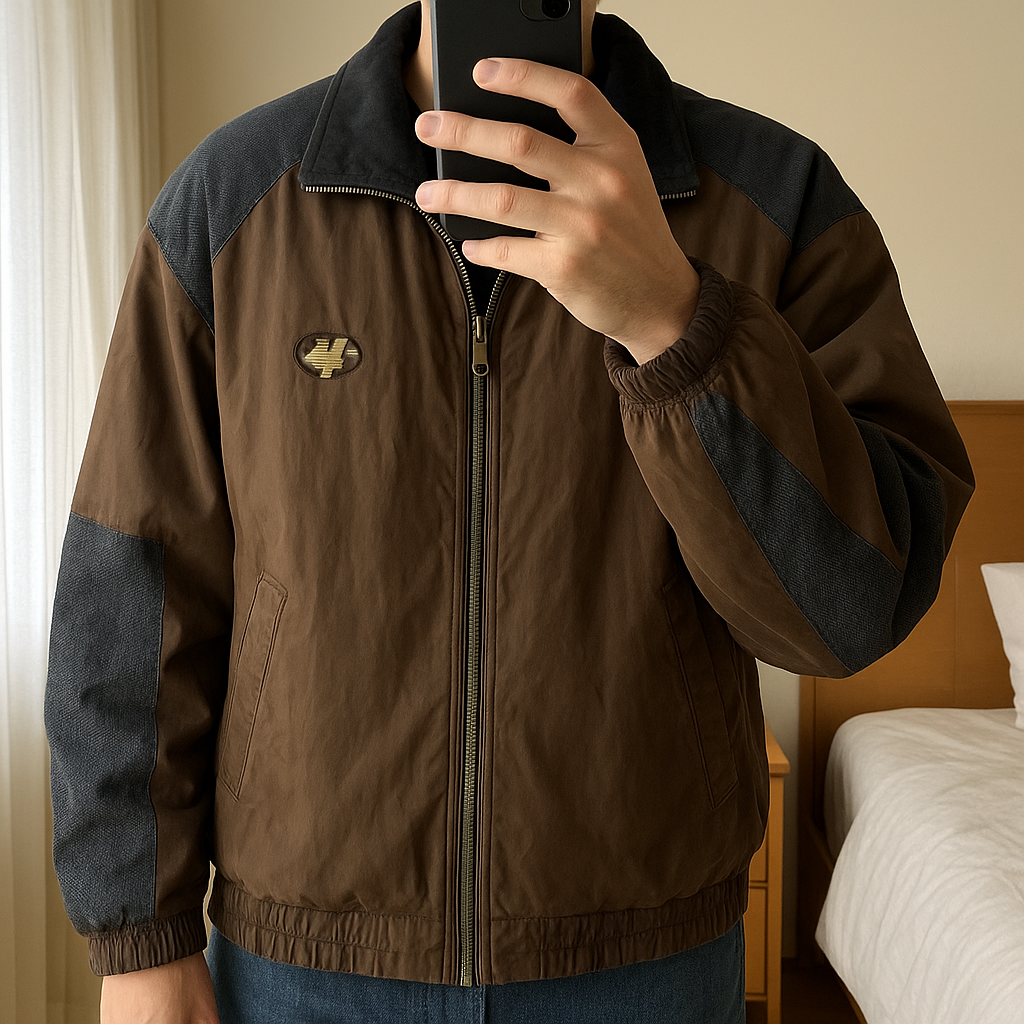 Giubbotto neve Astrolabio Vintage Taglia 48 – Ski Jacket – Veste Ski – Chaqueta Nieve – Jacke Winter in piedi, rivolto verso la fotocamera, in una camera da letto con luce soffusa e luce naturale che filtra dalla finestra.