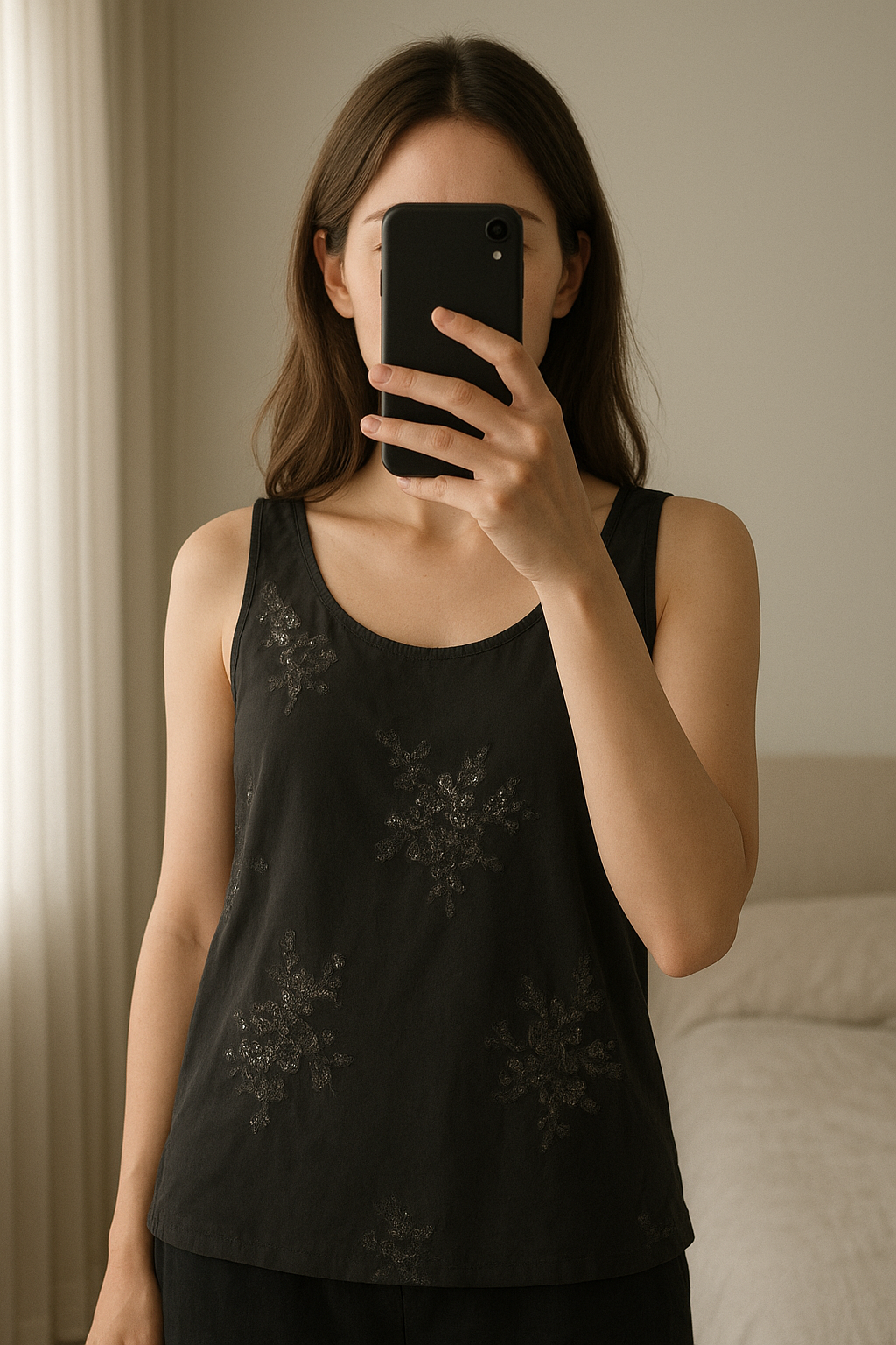 En un clic, notre IA transforme votre visuel produit en photo portée réaliste.