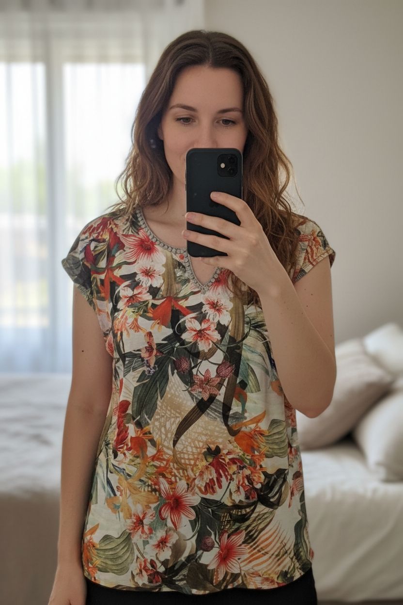 En un clic, notre mannequin IA transforme votre visuel produit en photo portée réaliste avec un mannequin virtuel.