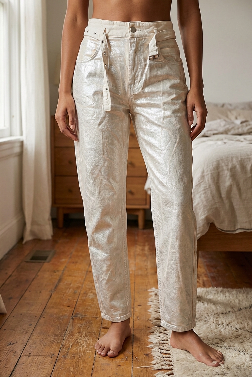 Une personne en Jupe Longue Zara Taille S Très bon état debout, face à la caméra, dans une chambre à la lumière douce, avec une lumière naturelle filtrant par la fenêtre.