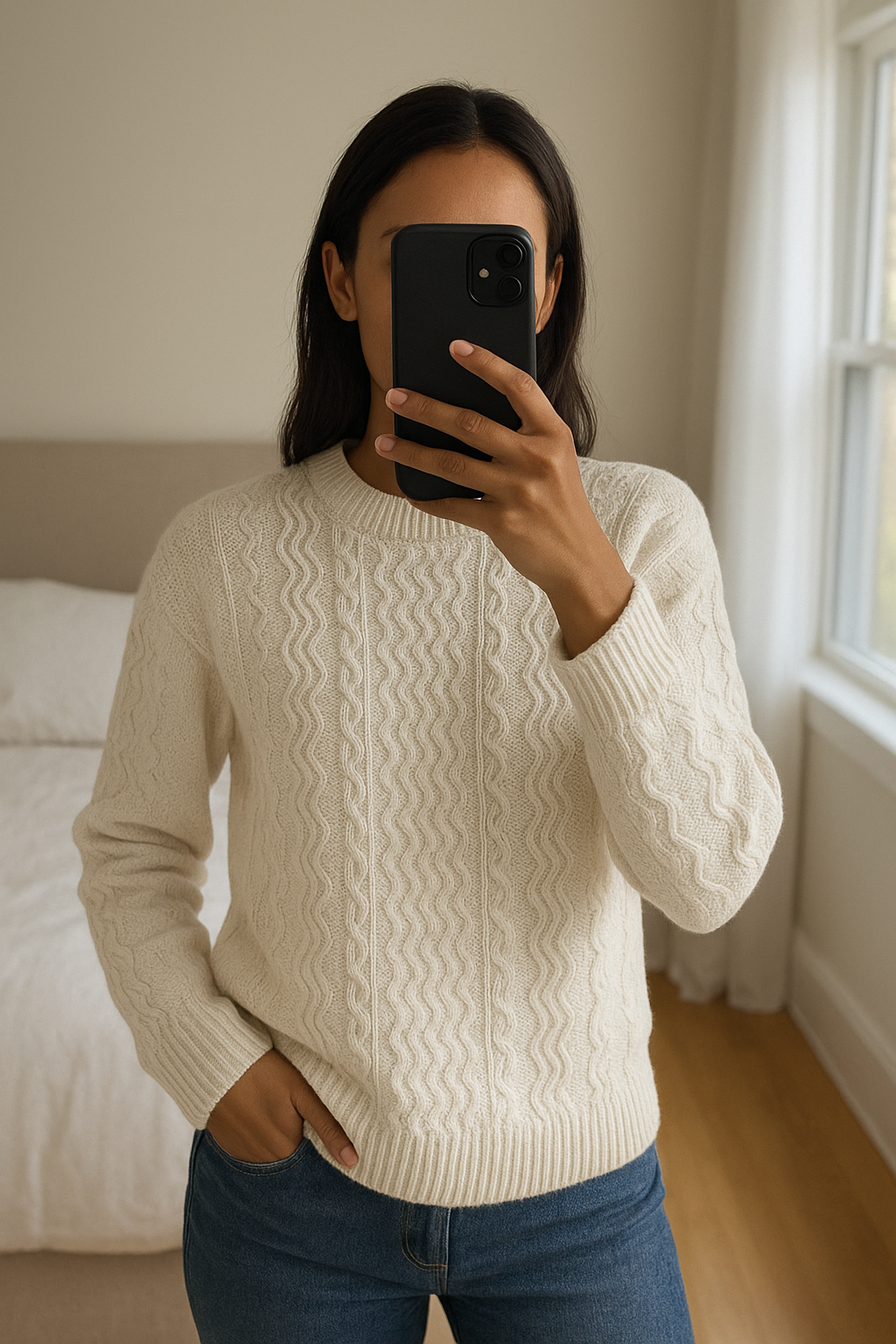 En un clic, notre mannequin IA transforme votre visuel produit en photo portée réaliste avec un mannequin virtuel.
