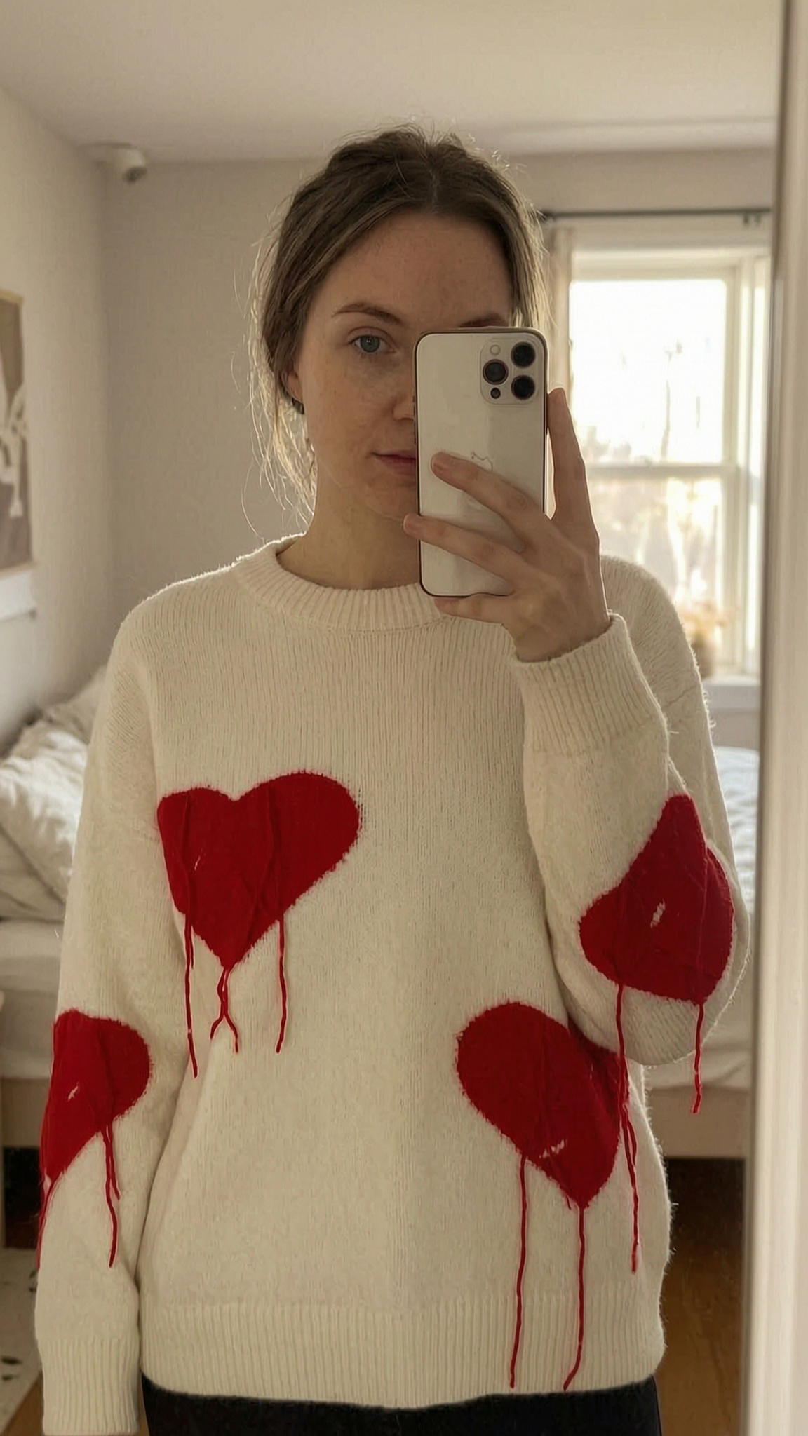 Pull L debout, face à la caméra, dans une chambre à la lumière douce, avec une lumière naturelle filtrant par la fenêtre.