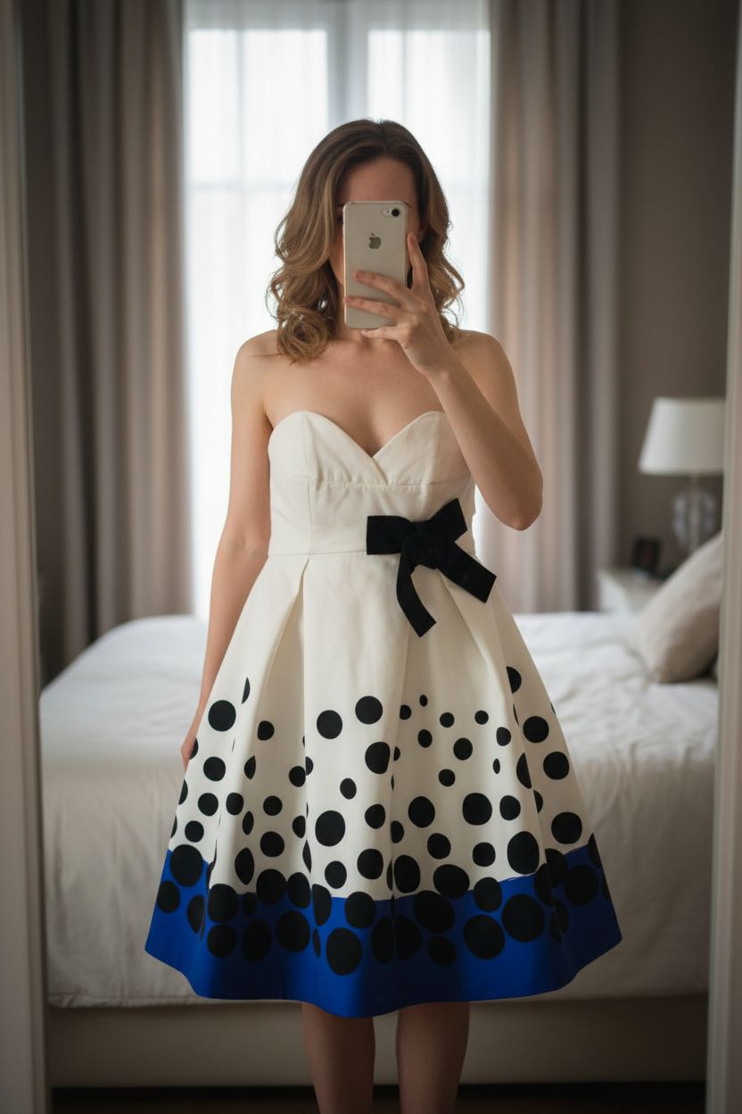 Sublime Robe Bustier Paule Ka 42 debout, face à la caméra, dans une chambre à la lumière douce, avec une lumière naturelle filtrant par la fenêtre.