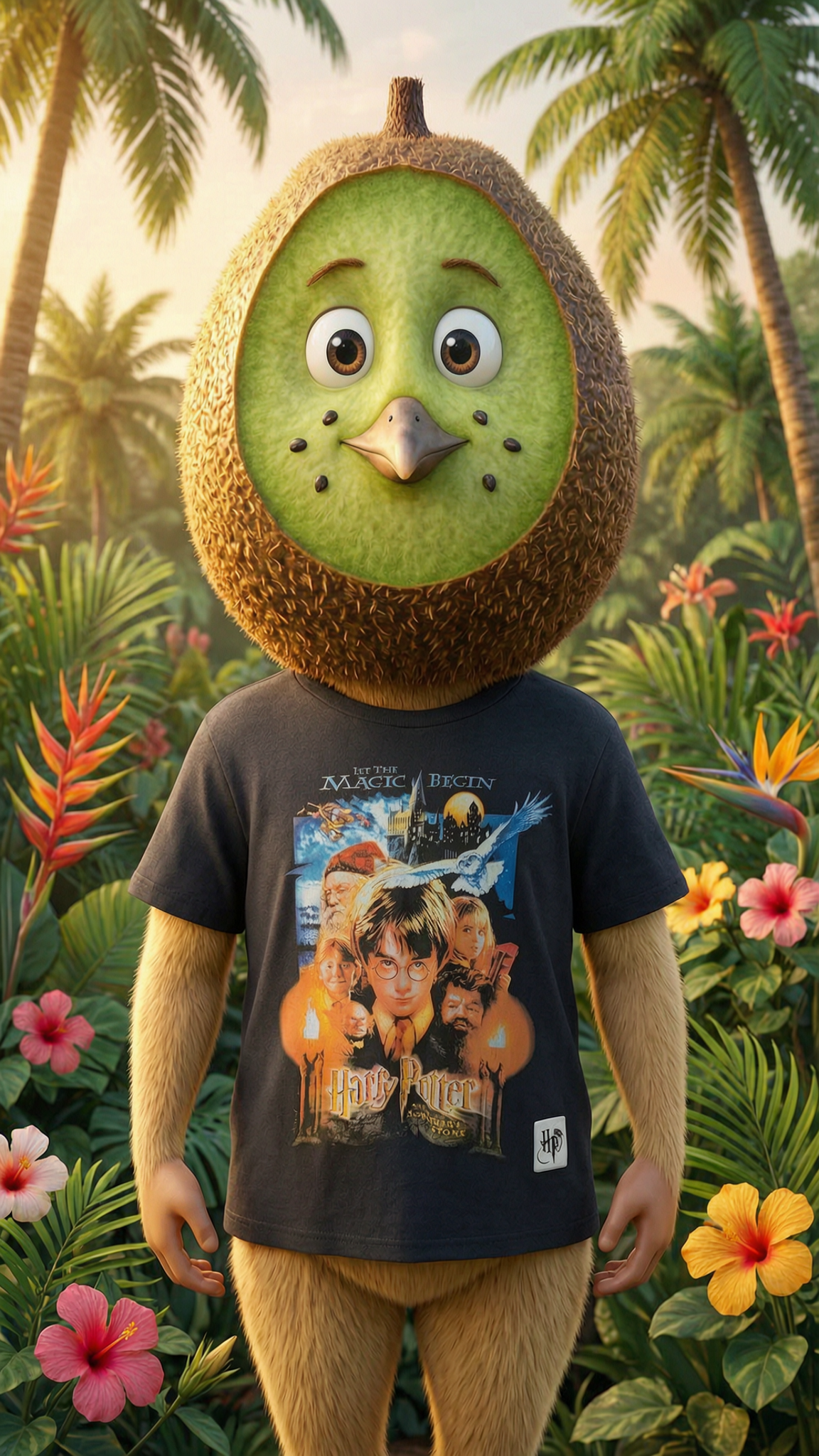 T-shirt Harry Potter | Vintage | Noir | Graphique affiche du film debout, face à la caméra, dans une chambre à la lumière douce, avec une lumière naturelle filtrant par la fenêtre.
