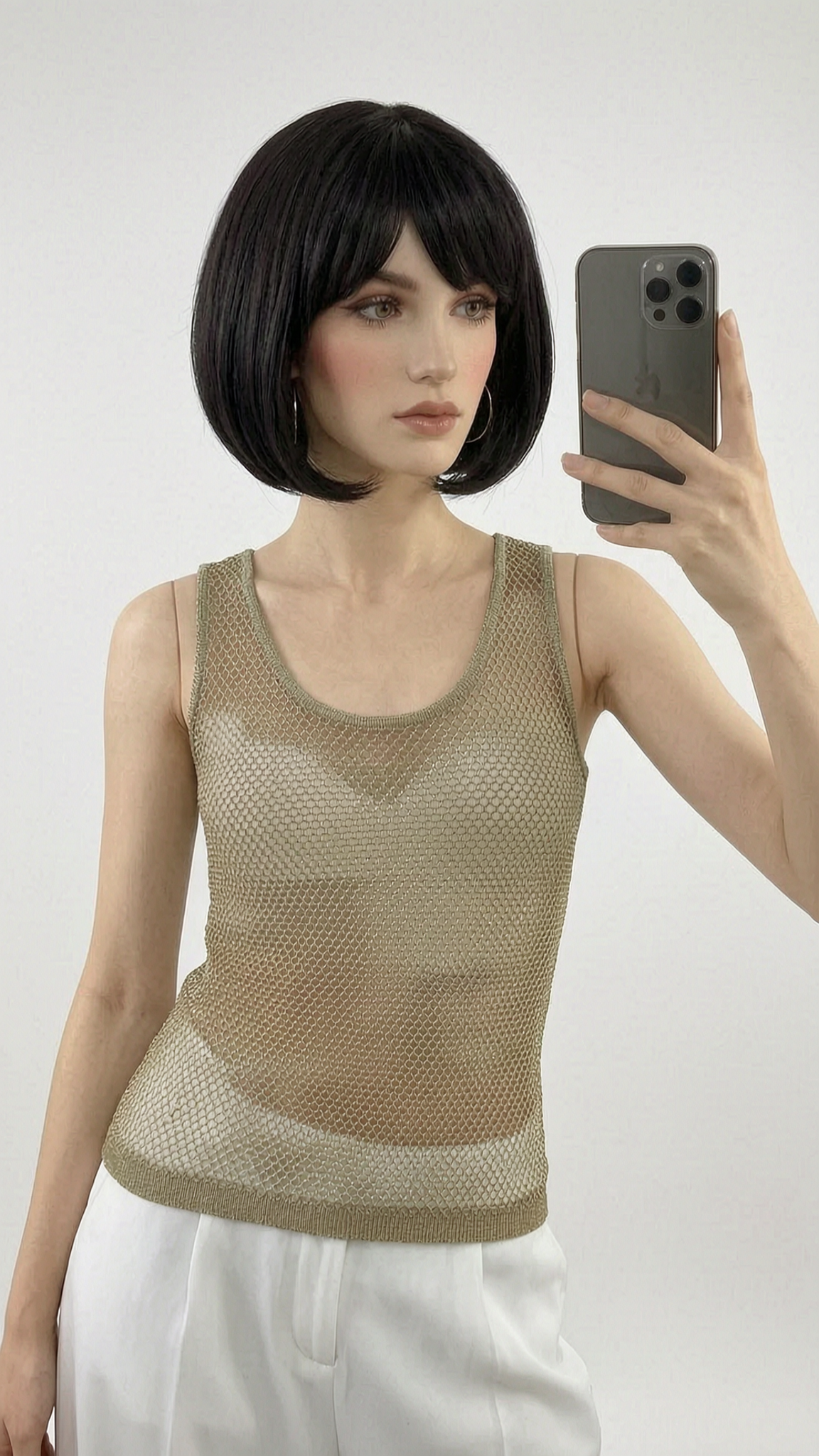 En un clic, notre mannequin IA transforme votre visuel produit en photo portée réaliste avec un mannequin virtuel.