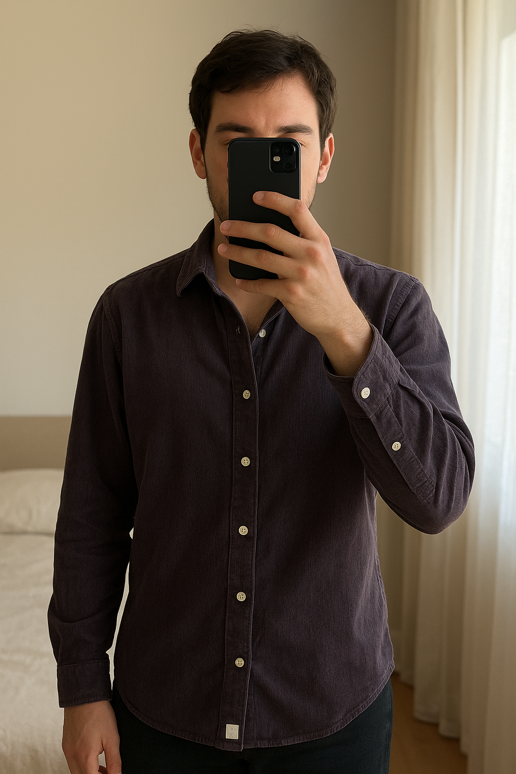 En un clic, notre IA transforme votre visuel produit en photo portée réaliste.