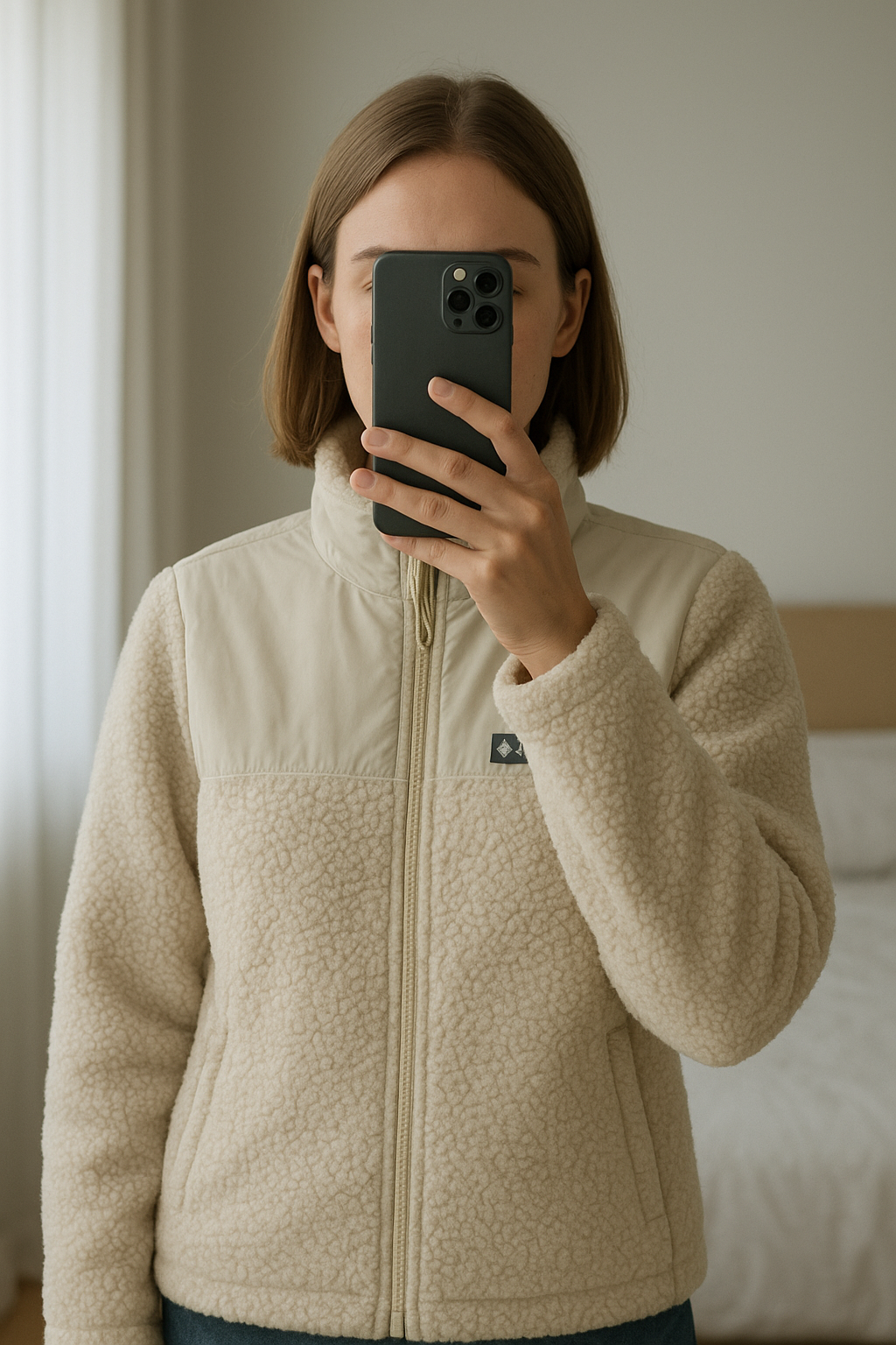 En un clic, notre IA transforme votre visuel produit en photo portée réaliste.