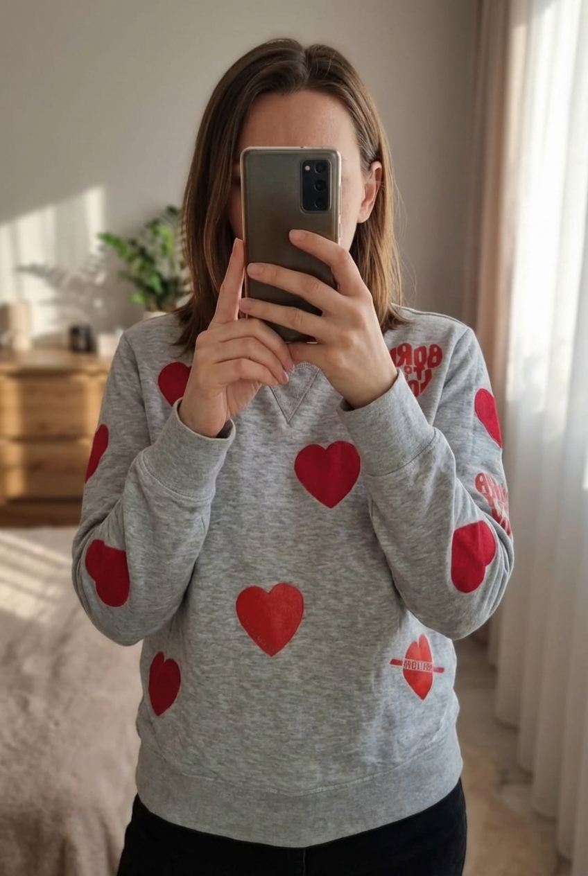Sweat scotch and soda L debout, face à la caméra, dans une chambre à la lumière douce, avec une lumière naturelle filtrant par la fenêtre.