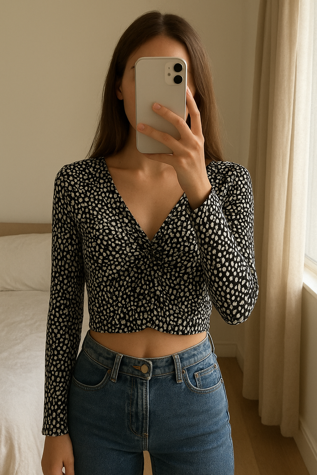 Com um clique, a nossa IA transforma a sua imagem de produto em uma foto realista com modelo.